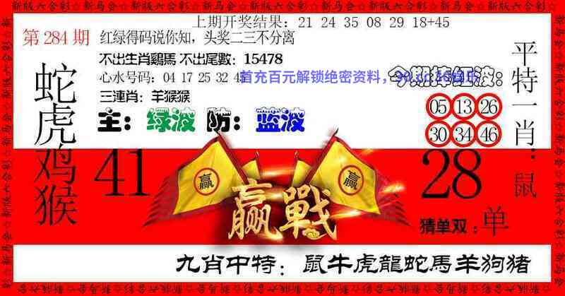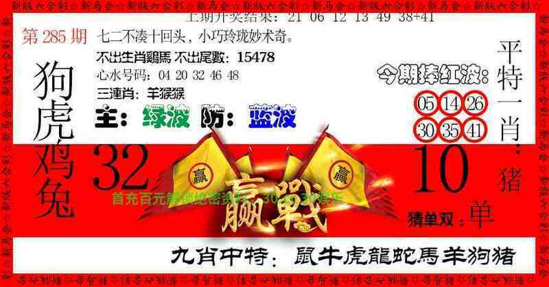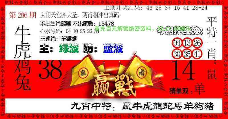 284期:九肖【鼠虎蛇鸡兔龙羊狗】开:牛41中
